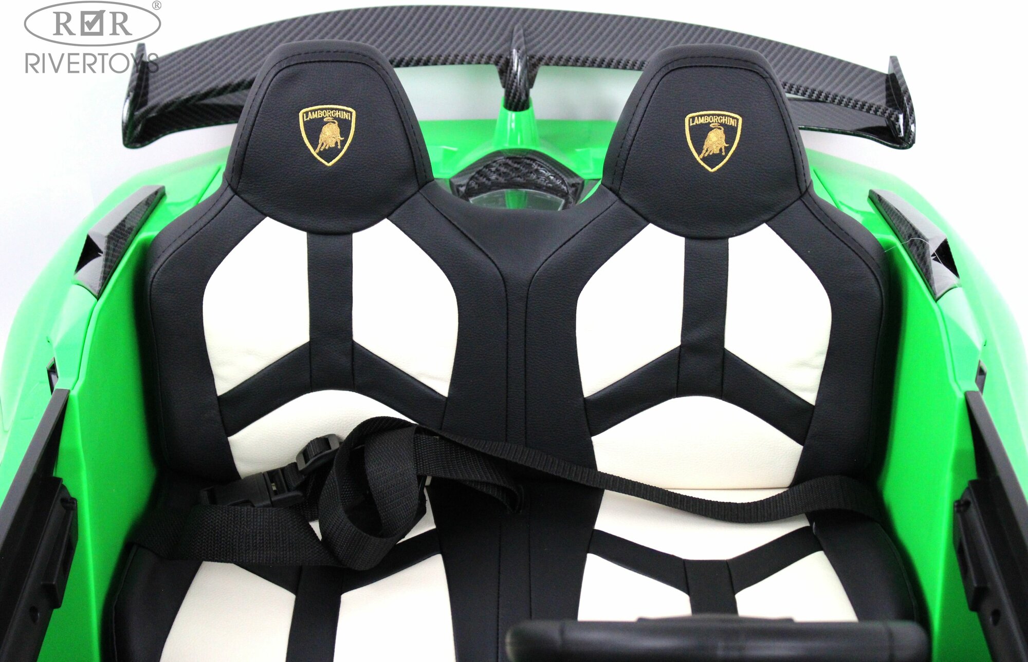 Детский электромобиль Lamborghini Aventador SVJ (A111MP) зеленый (RiverToys), двухместный, с пультом