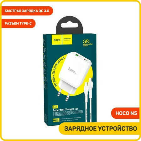 СЗУ HOCO N5 Favor dual port PD20W+QC3.0 charger set Lightning белый