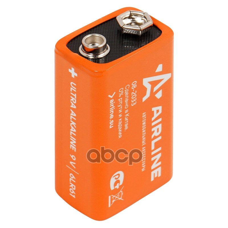 Батарейка "AIRLINE" 6LR61/Крона 9V (щелочная) AIRLINE 9V-01 | цена за 1 шт
