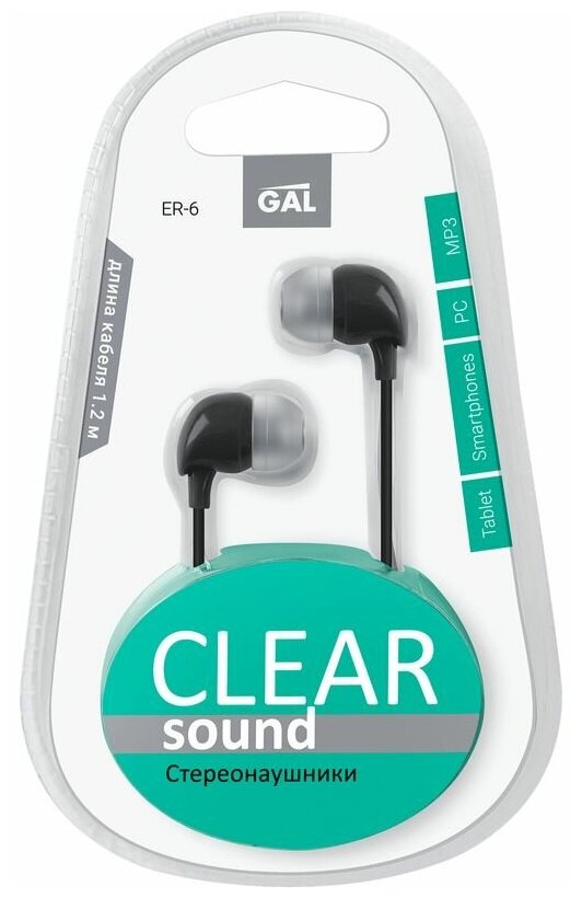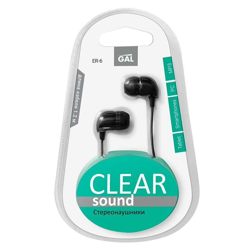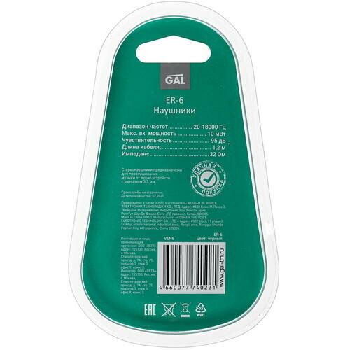 Наушники вкладыши GAL ER-6 Clear Sound, блистер, черные