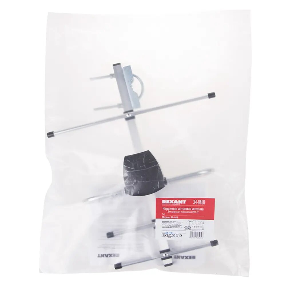 Антенна ТВ наружная "активная" для аналогового и цифрового ТВ - DVB-T2 (модель RX-408) (пакет) Rexant 34-0408