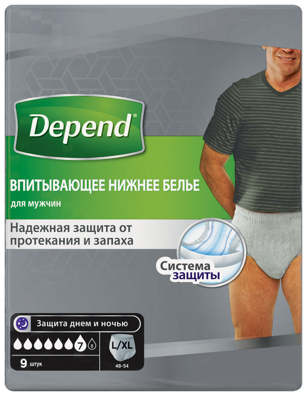 Depend / Депенд - мужское впитывающее белье, размер L/XL, 9 шт.