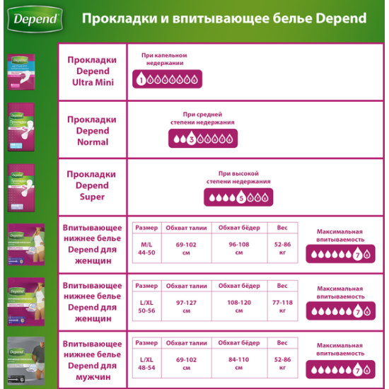 Прокладки при недержании DEPEND Normal для женщин, 12 шт интересное: