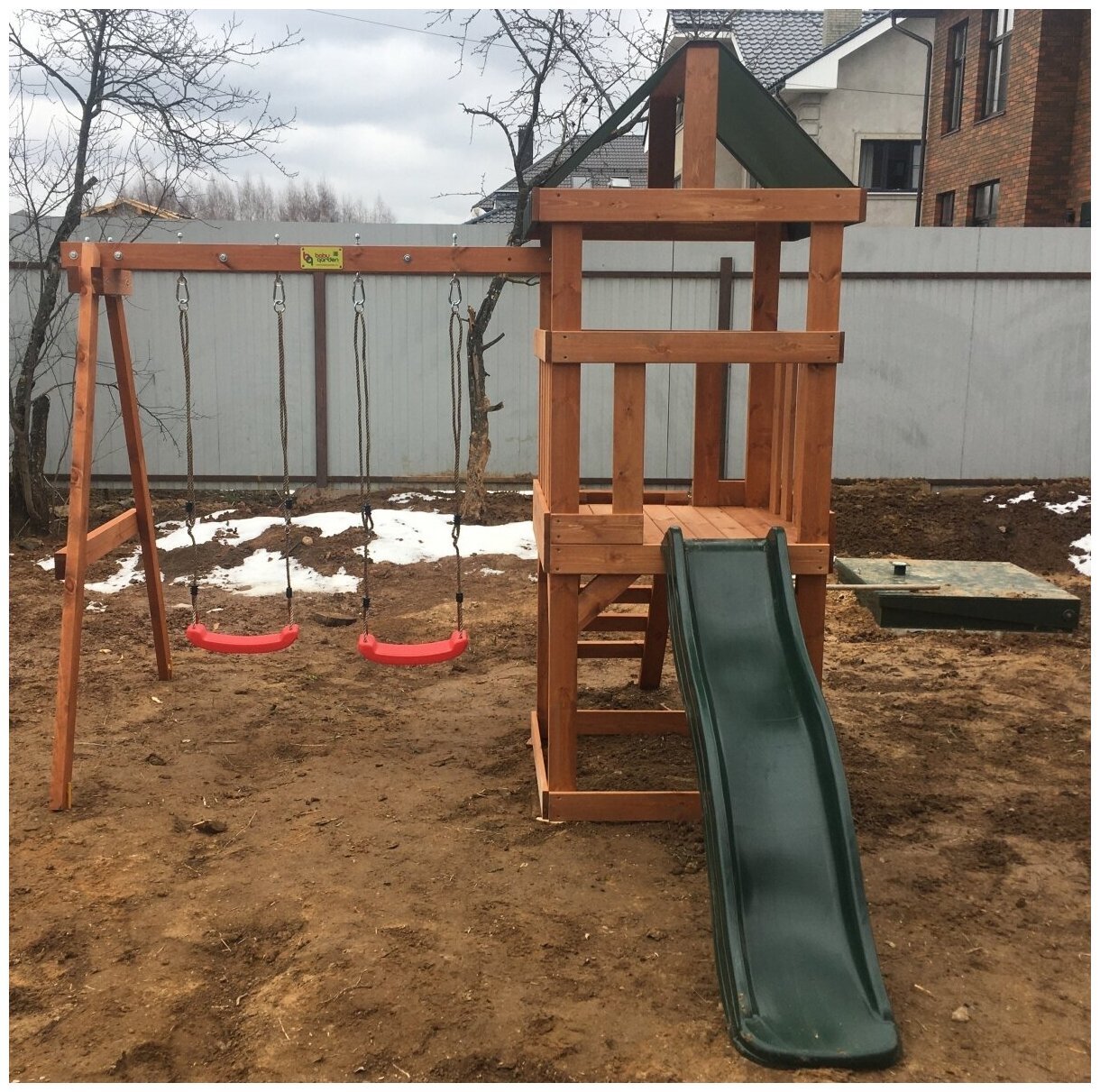 | Минусы: | Довольно хлипкая конструкция. Качались не много, надо подкручивать и укреплять. Тонкие доски на полу в домике. Лестница в домик вообще не из горизонтальных досок, а ребром, подниматься по ней больновато даже. По хорошему такую штуку сколотить надо было самим из досок из леруа, если бы было время. Ну или не так жкономить и брать аналоги ценой подороже. |