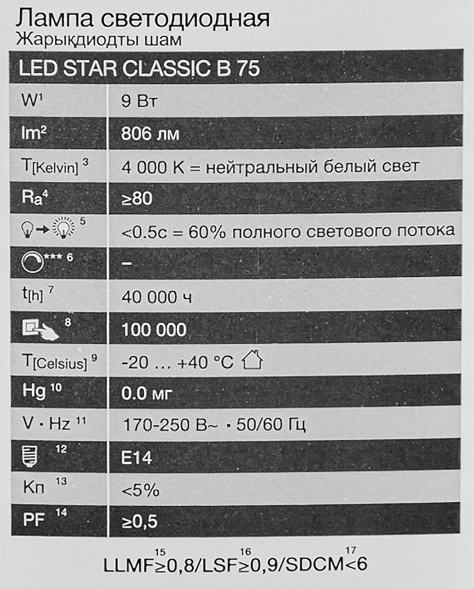 | Световой поток | 806 лм |