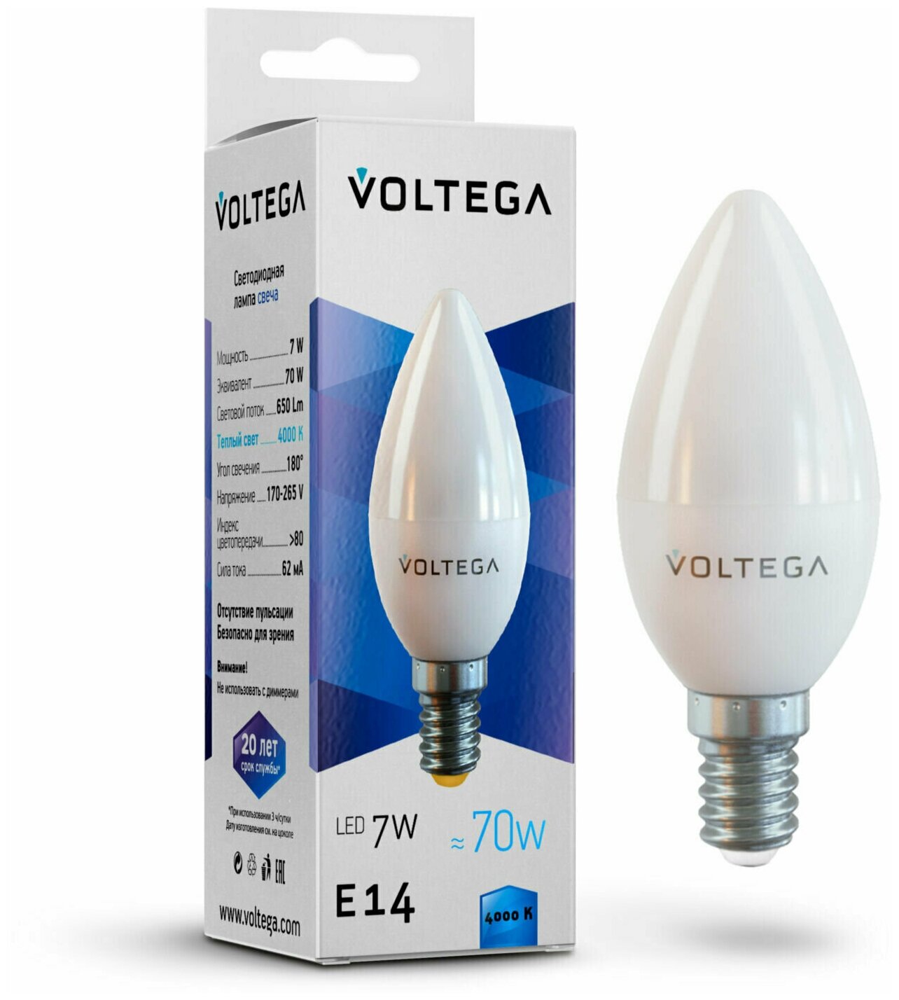 VOLTEGA Лампа светодиодная Voltega E14 7W 4000К матовая VG2-C37E14cold7W 7049
