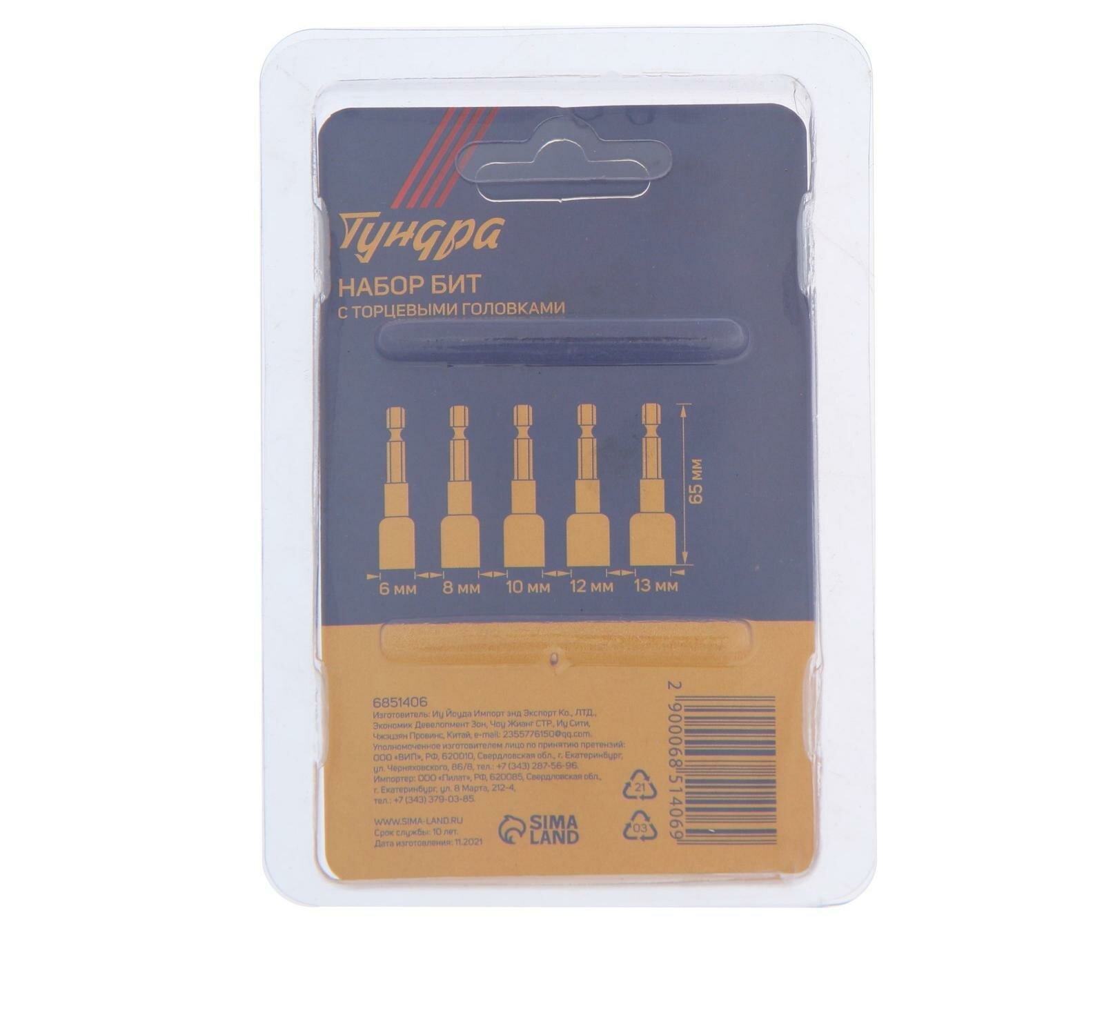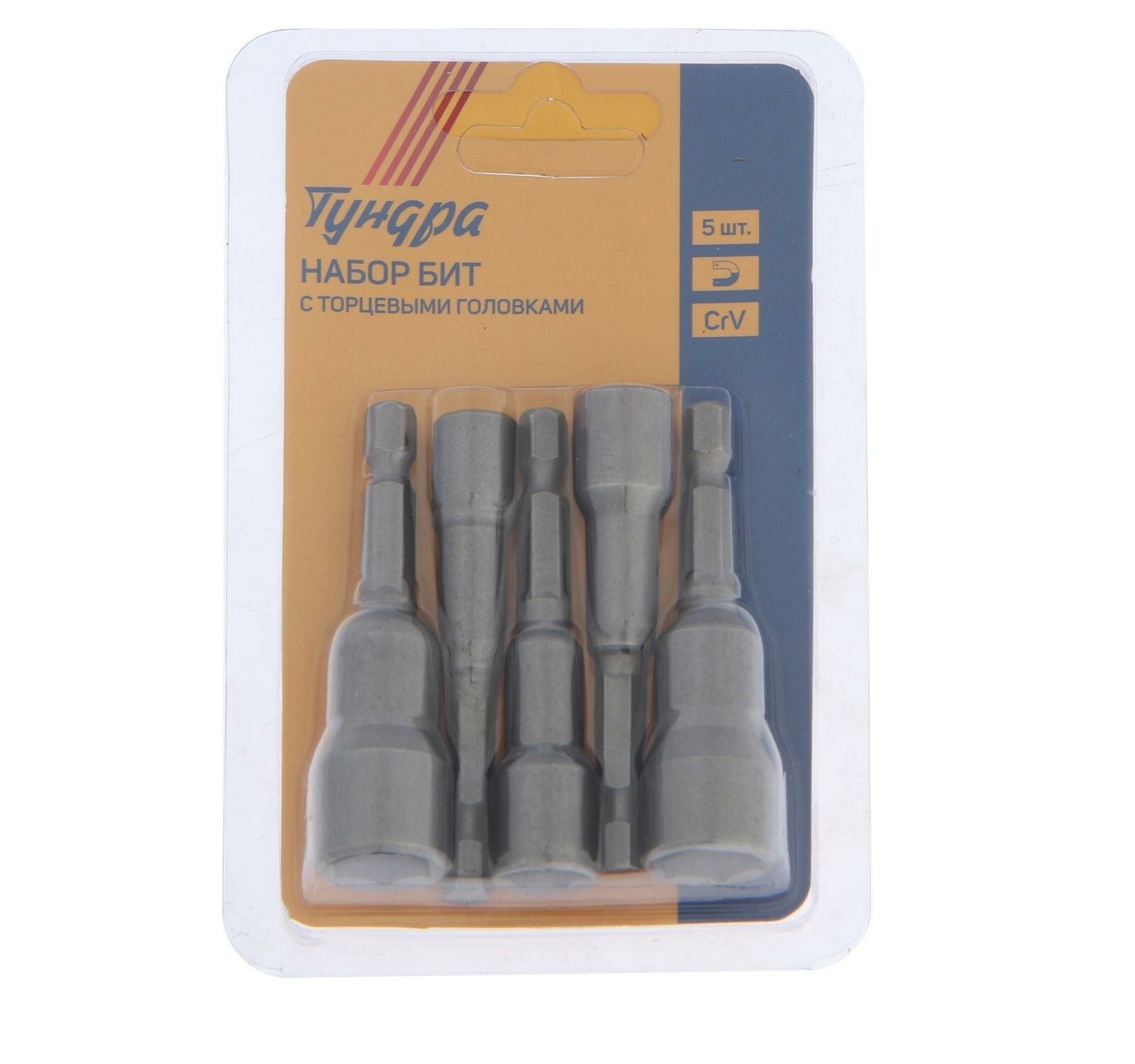 Набор бит с торцевыми головками тундра, CrV, магнит, 6-8-10-12-13 х 65 мм, 5 шт.