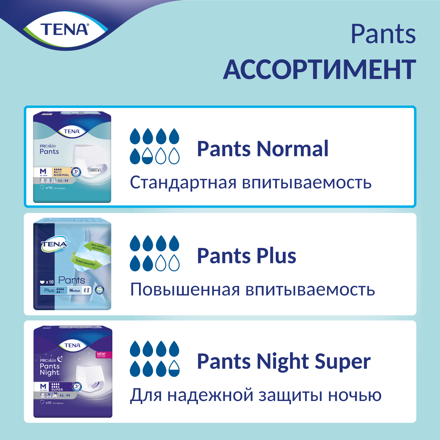 Tena Pants Normal Proskin / Тена Пантс Нормал - впитывающие трусы, M, 10 шт.