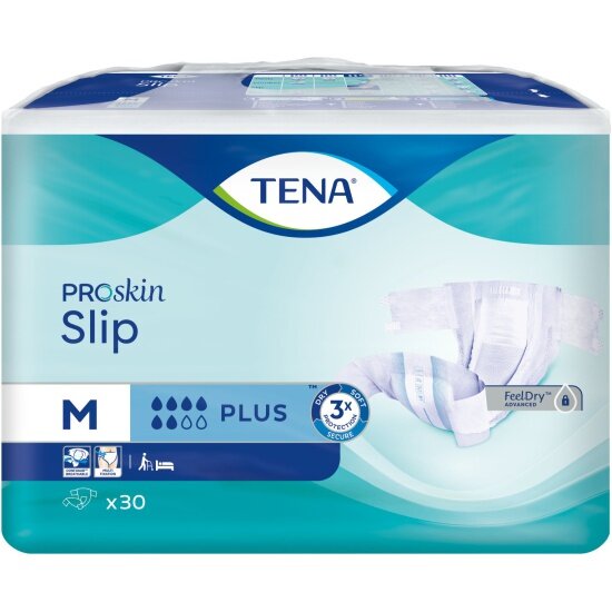 Купить Подгузники для взрослых TENA Slip Plus, размер M (80-122см), дышащие, 30 шт