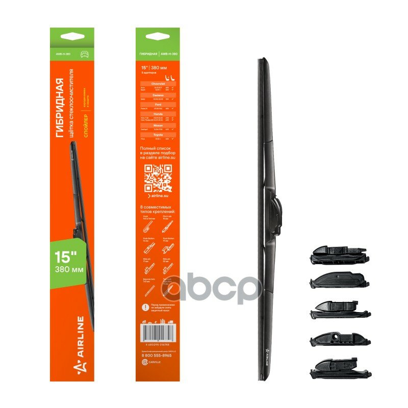 Щетка стеклоочистителя гибридная 380 мм (15), 8 адаптеров Airline AWBH380