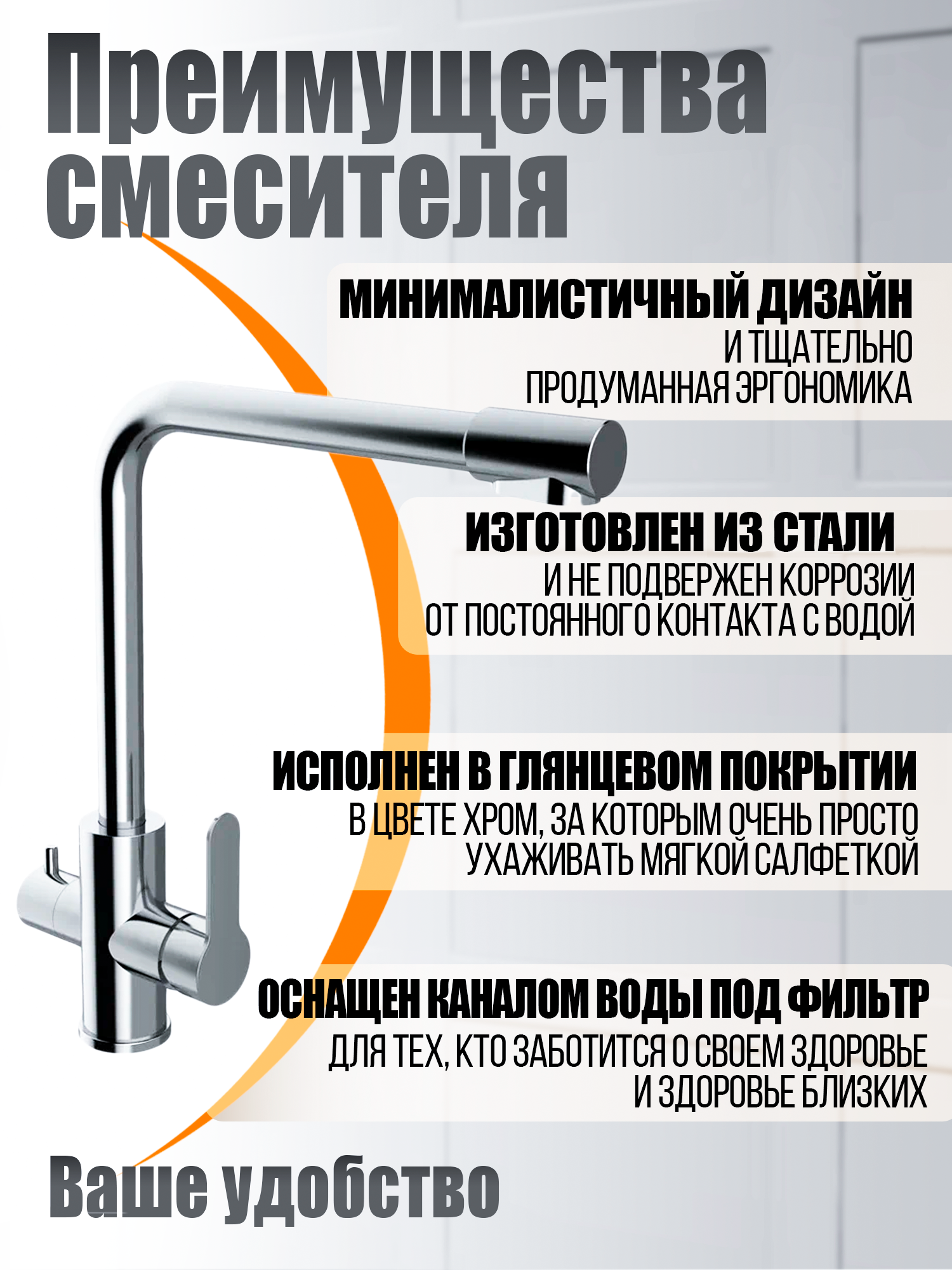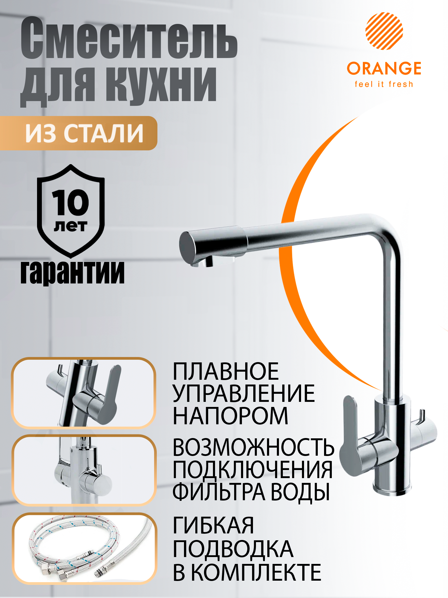 Смеситель для кухни с подключением фильтра Orange Steel, хром. M99-008cr