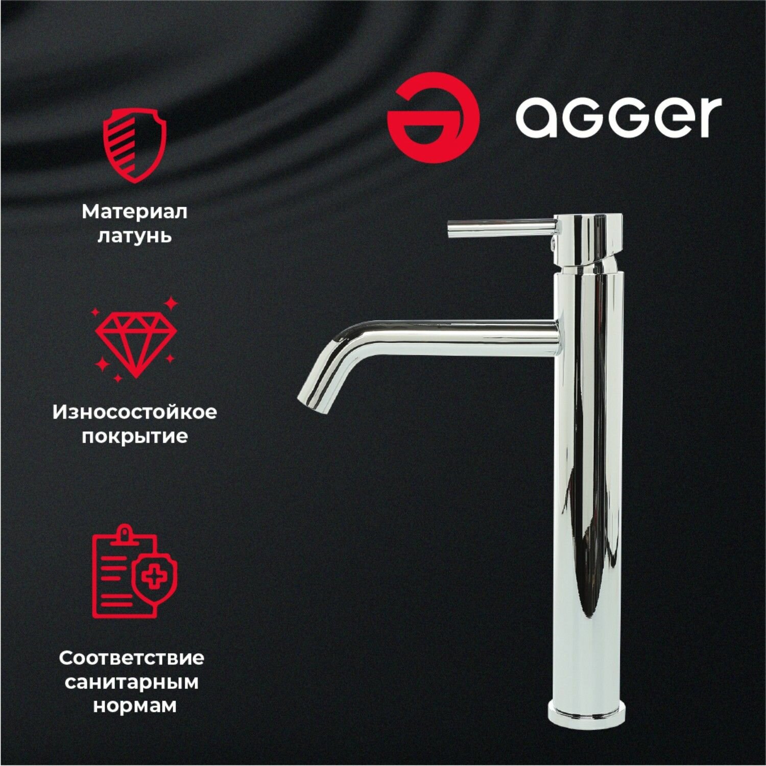 Смеситель для раковины, для накладной раковины, высокий Agger Zest A0712100, хром