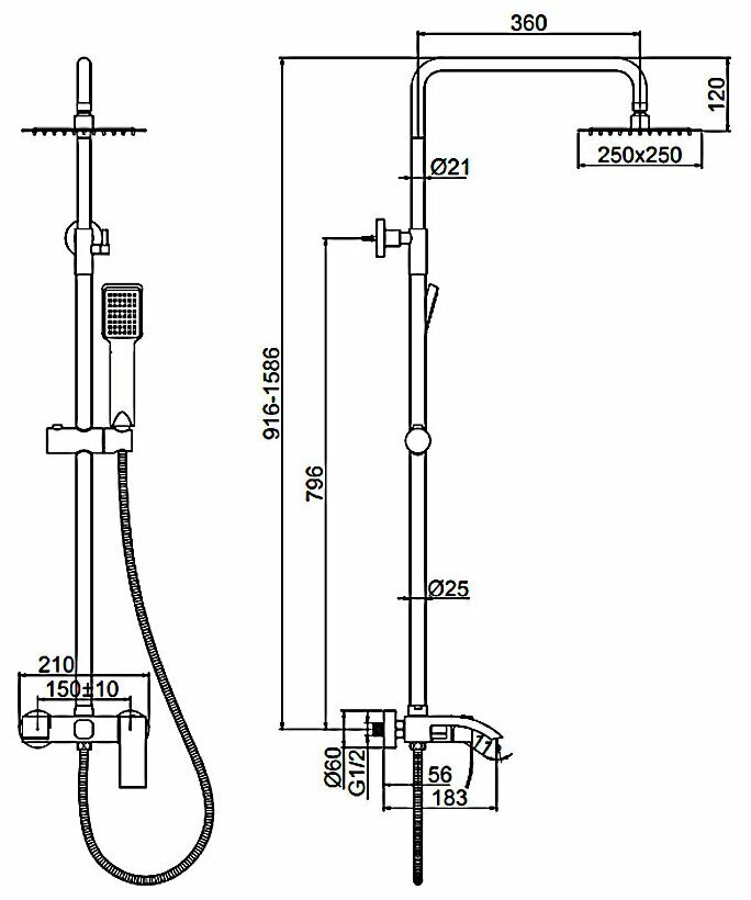 Душевая стойка со смесителем и тропическим душем Ledeme R L72417 нержавеющая сталь