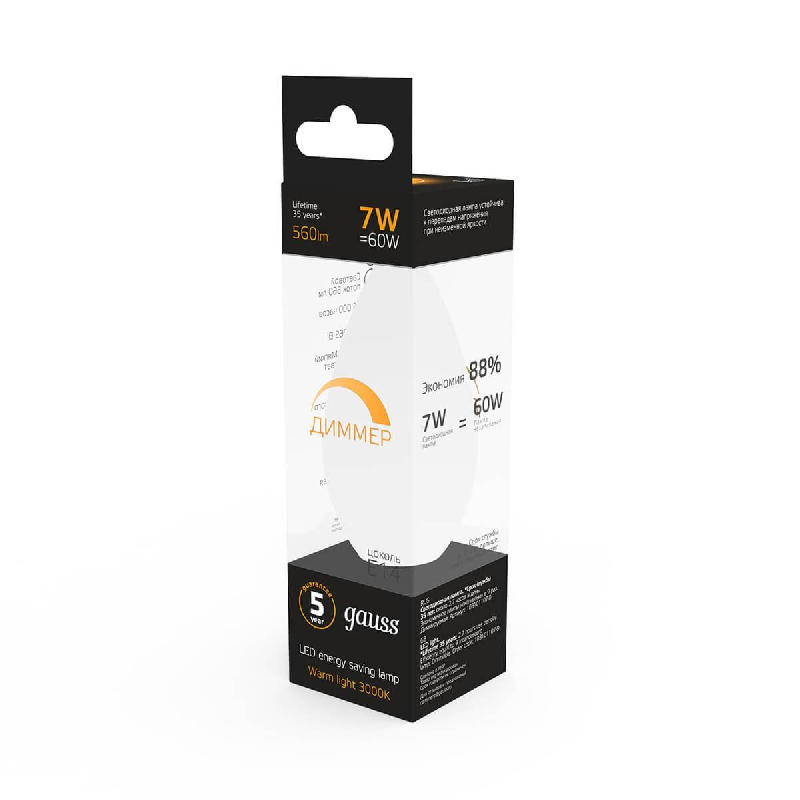 Лампа светодиодная Black Candle-dim E14 7Вт 3000К диммир. 103101107-D, GAUSS 103101107D (1 шт.)