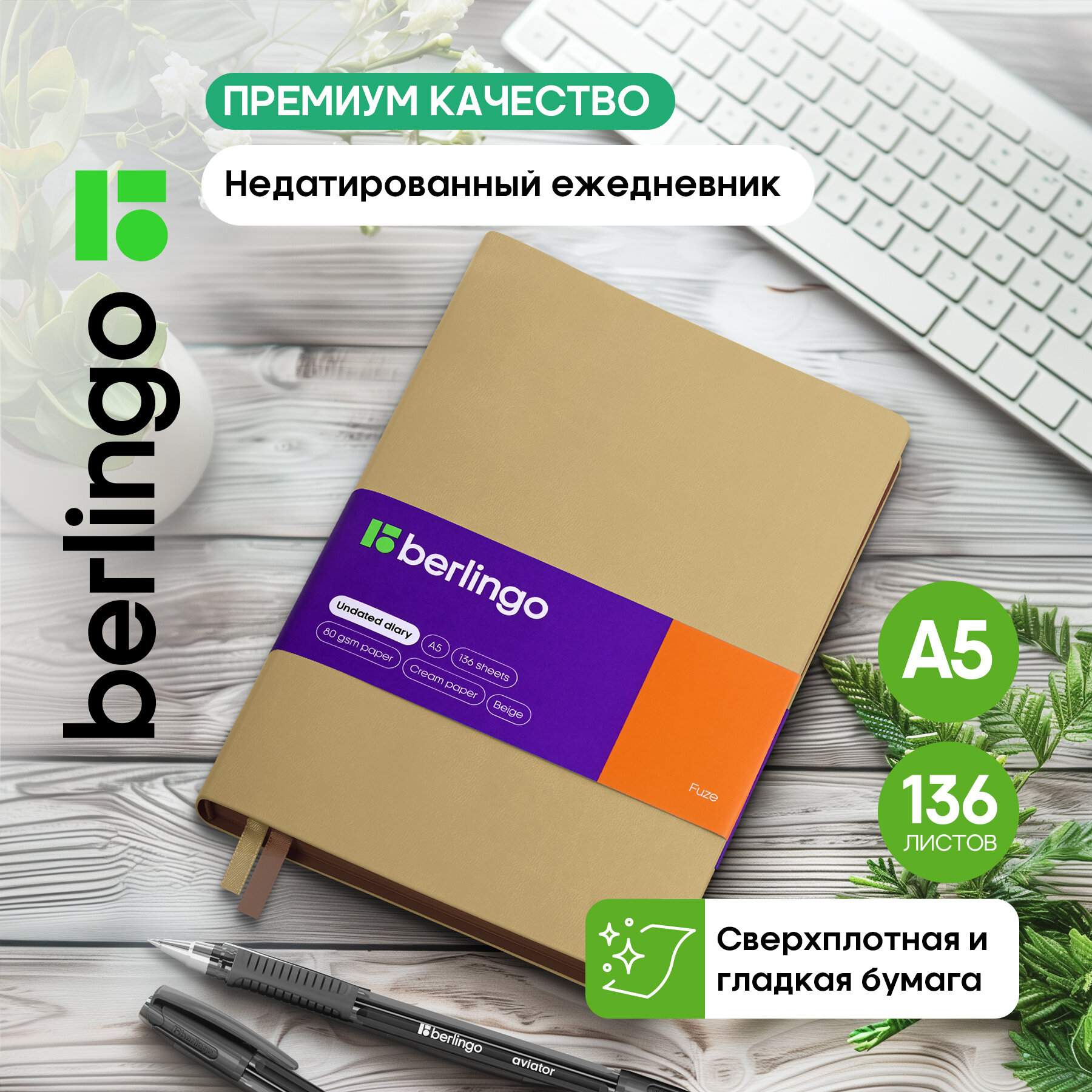 Ежедневник недатированный Berlingo A5, 136 листов, кожзам, "Fuze", цветной срез, бежевый (UD0_87506)