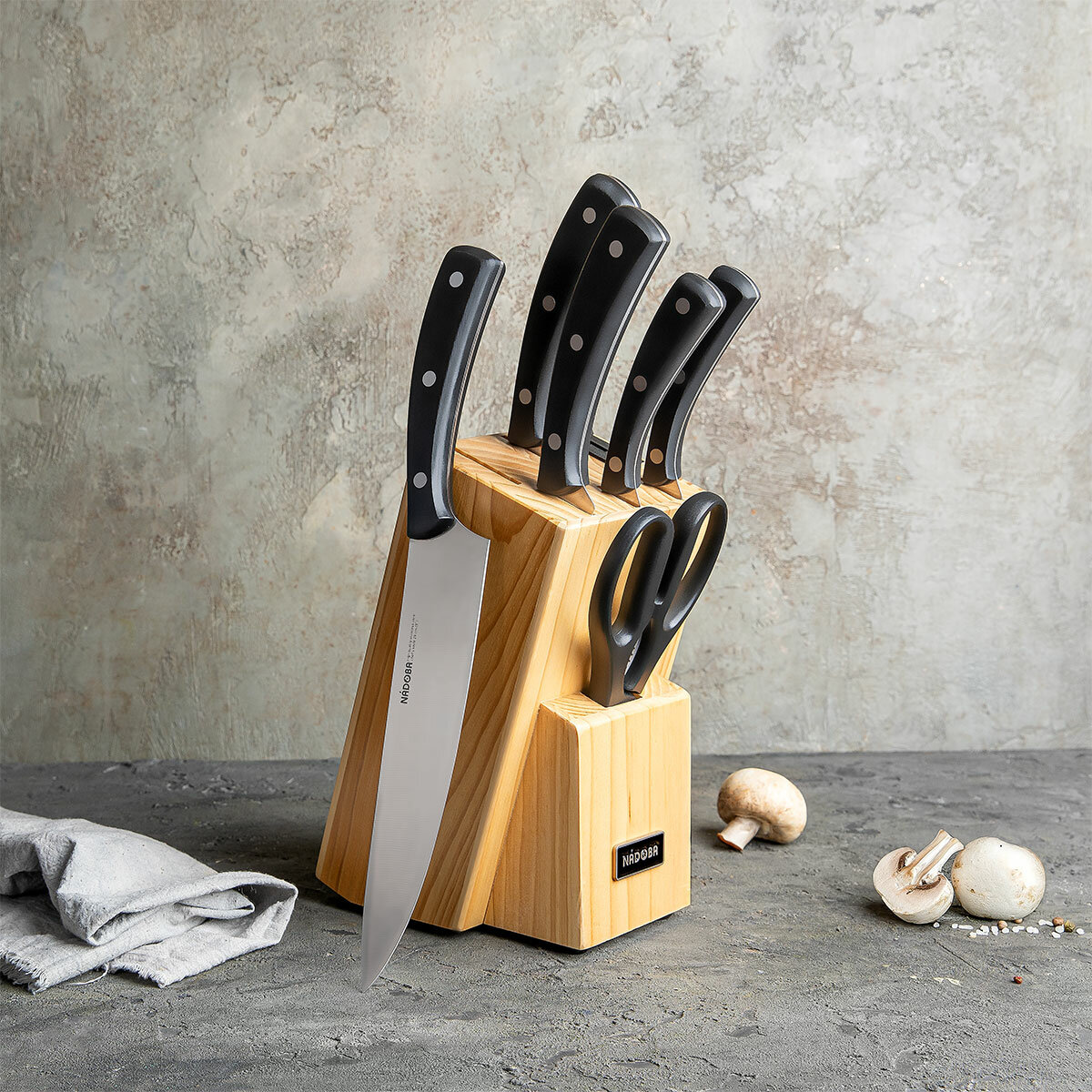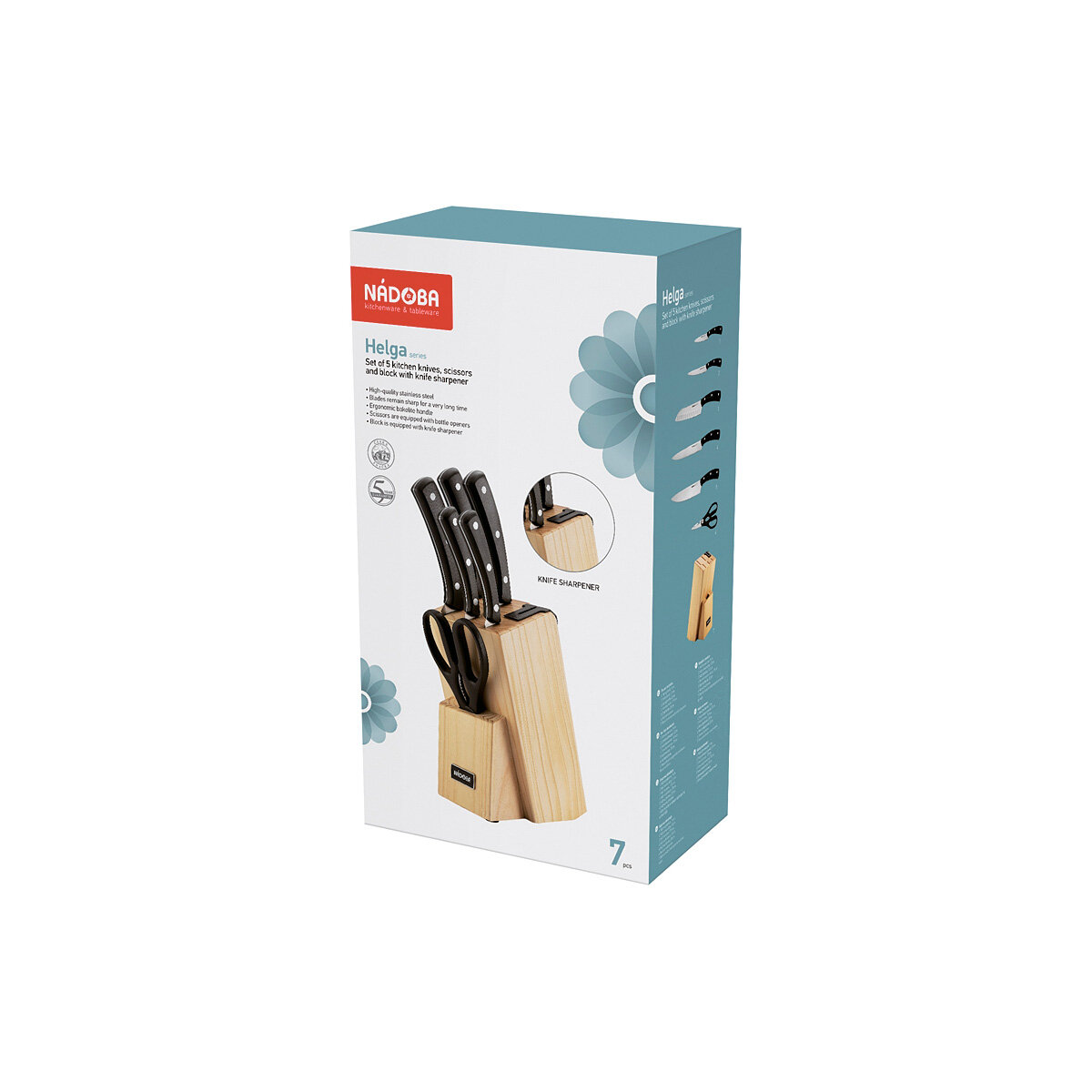 Набор кухонных принадлежностей: 5 ножей и блок для ножей с ножеточкой HELGA NADOBA