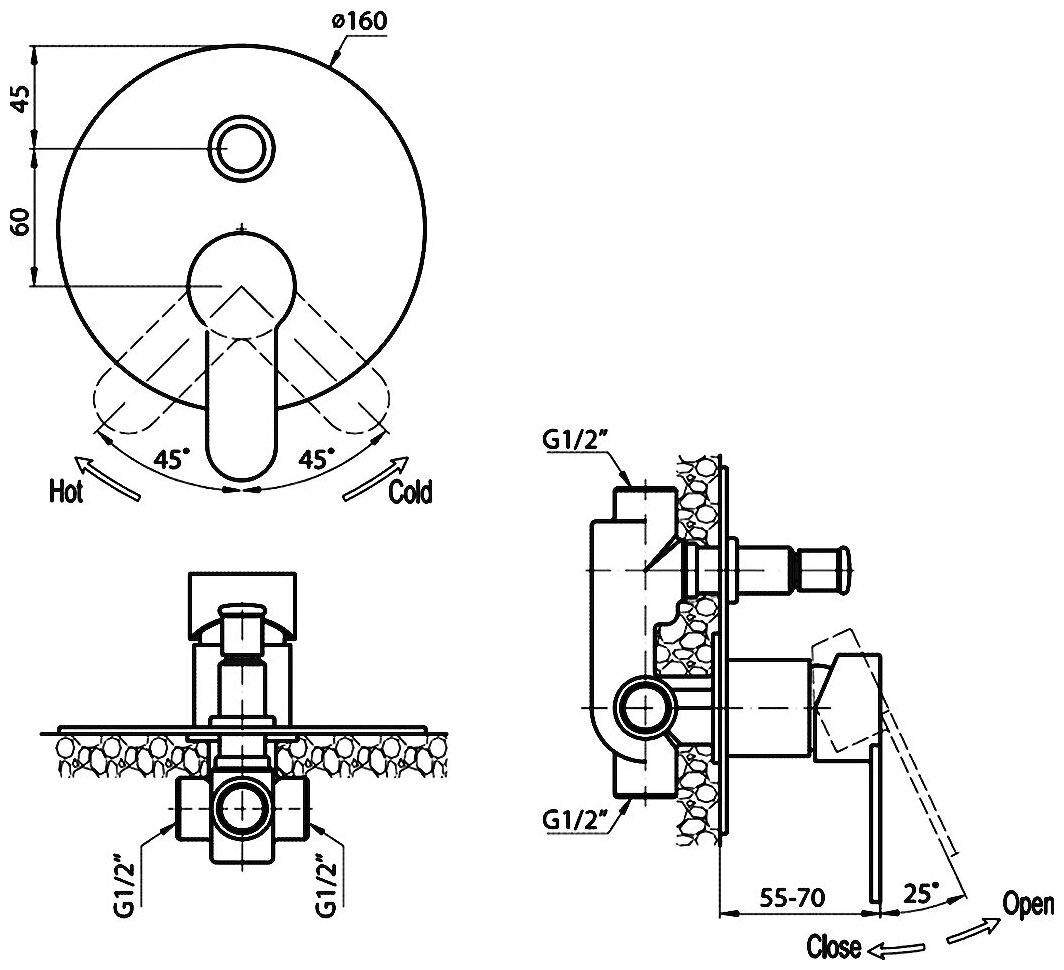 Встраиваемый смеситель для душа CEZARES LACONICO-C-VDI-01
