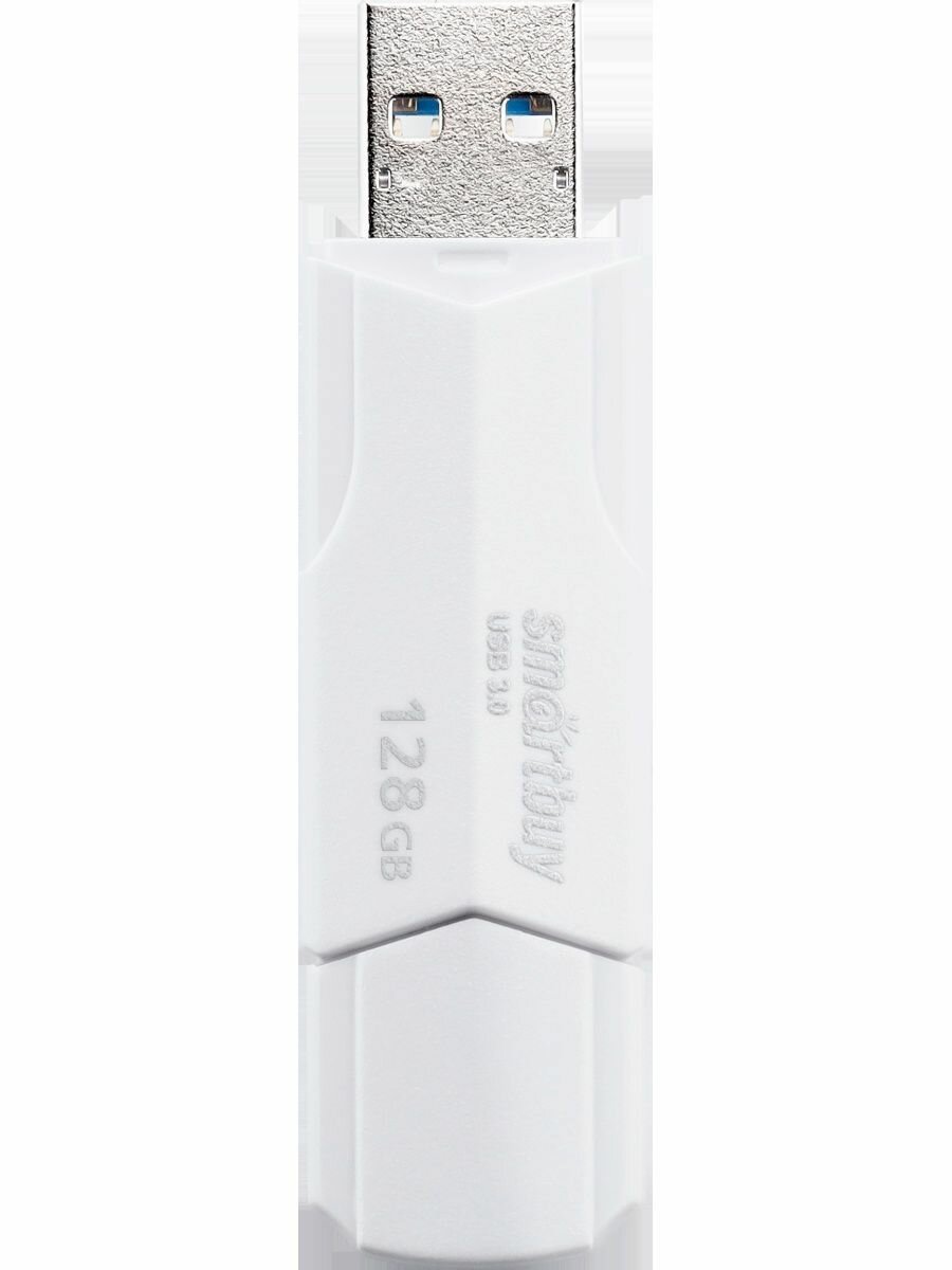 Флешка Smartbuy 128GBCLU-W3, 128 Гб, USB3.0, чт до 175 Мб/с, зап до 25 Мб/с, белая