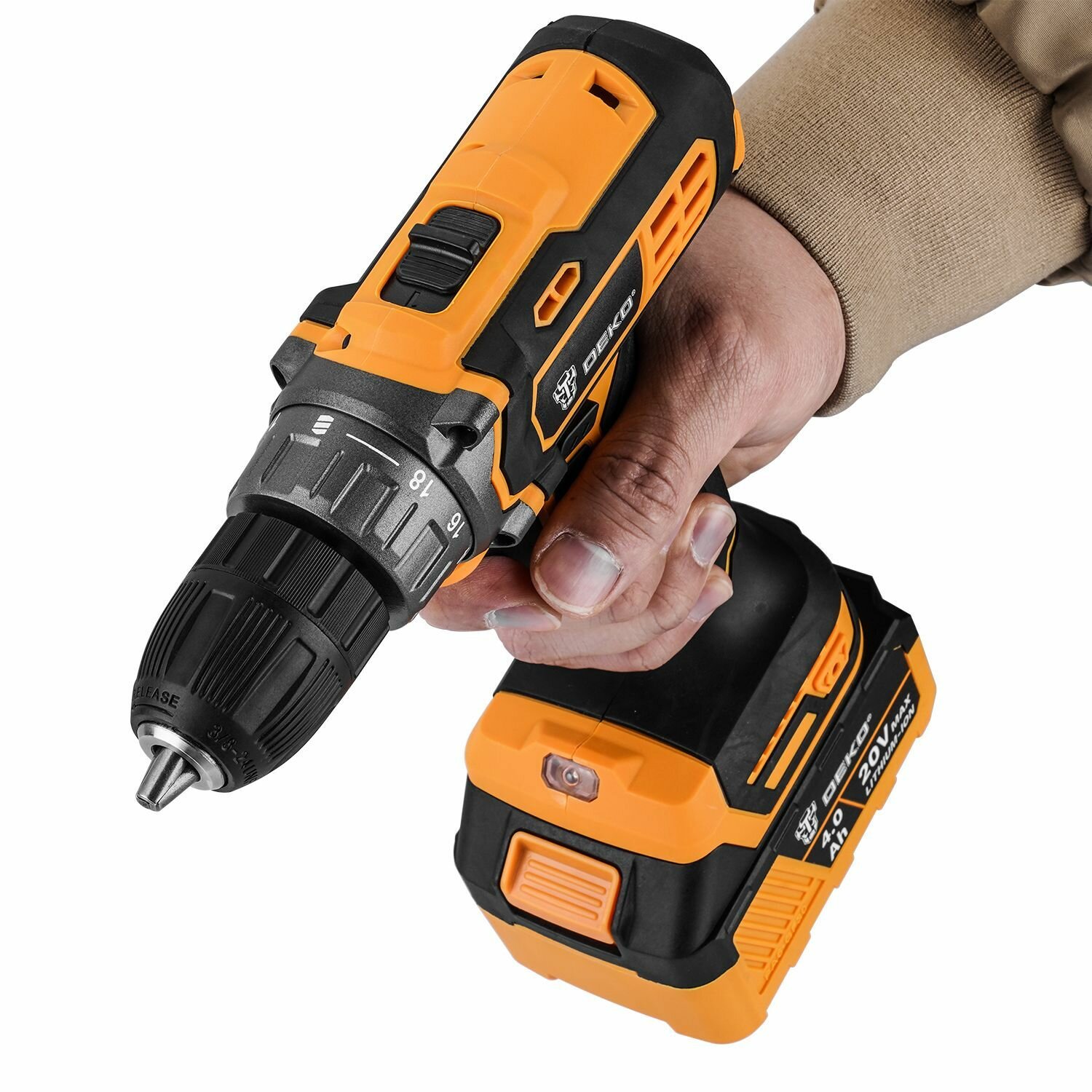 Аккумуляторная дрель-шуруповерт DEKO DKCD20 20В и аккумуляторная УШМ DEKO DKAG20-125 20В 125мм 2х4,0Ач 063-4204