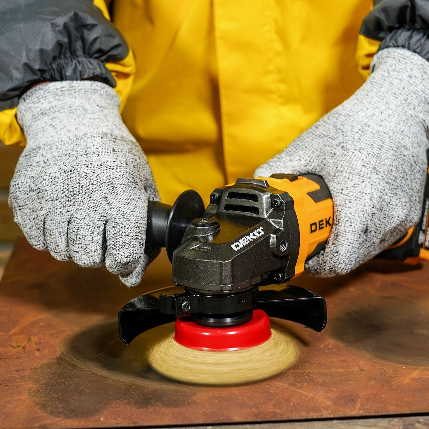 Дрель-шуруповерт Deko DKCD20 20В 1*2.0Ач и аккумуляторная УШМ DEKO DKAG20-125 20В 125 черно-желтый