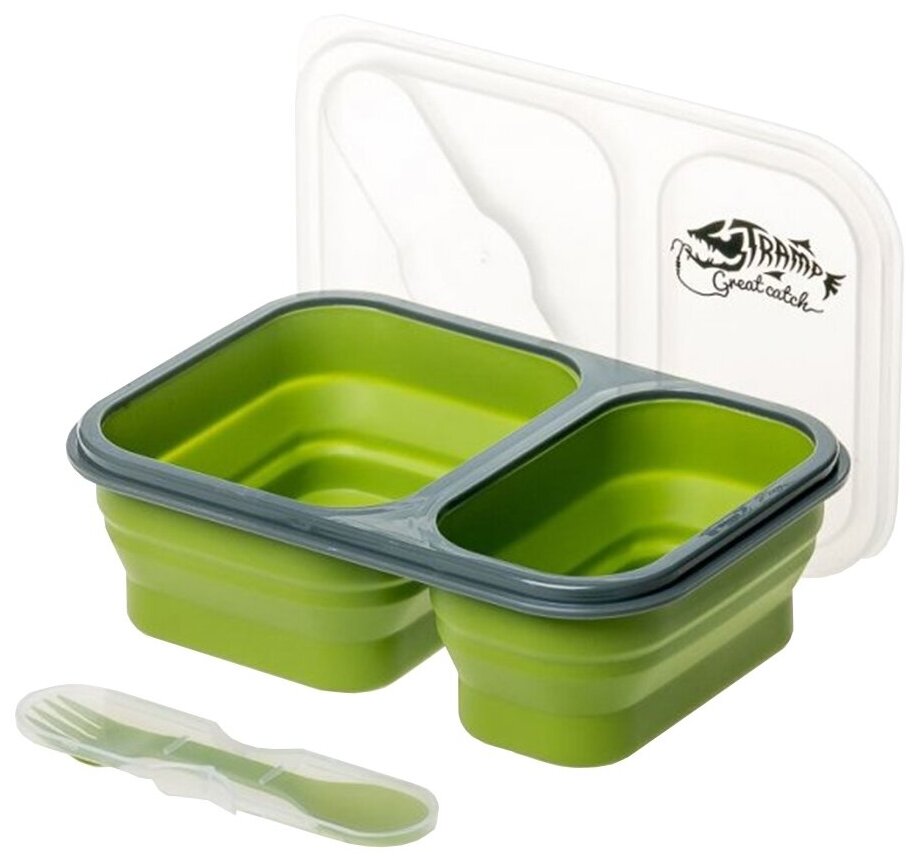 Контейнер Tramp силиконовый 2 отсека с ловилкой 900мл Зелен