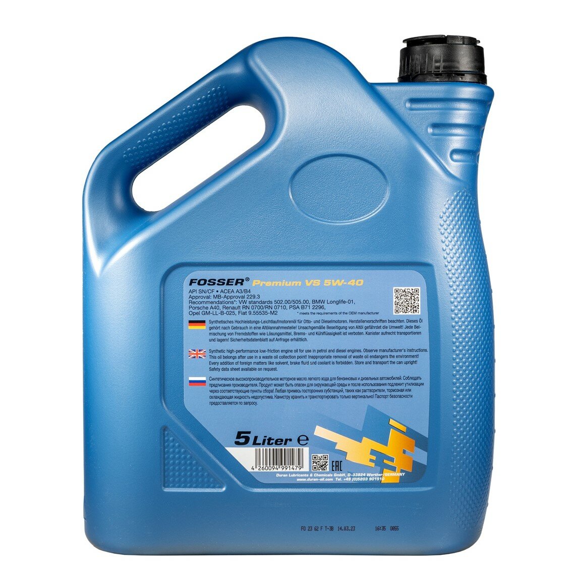 Купить FOSSER 10045L Моторное масо FOSSER Premium VS 5W-40, 5