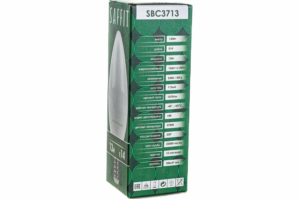 Лампочка светодиодная Saffit 13Вт 230V E14 2700K C37, SBC3713, 55163