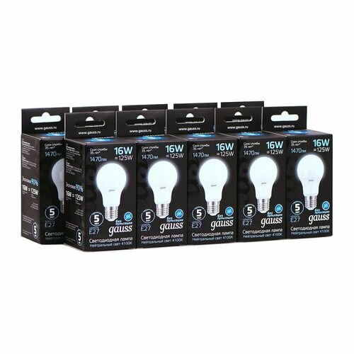 (5 шт)Лампа Gauss A60 16W 1520lm 4100K E27 LED
