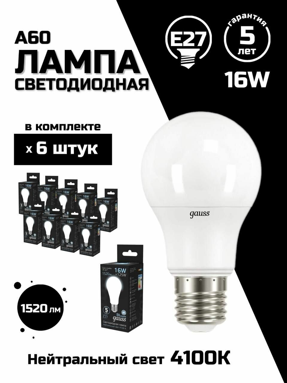 Светодиодная лампочка Gauss A60 4100K (16 Вт, E27) 10 шт (102502216)