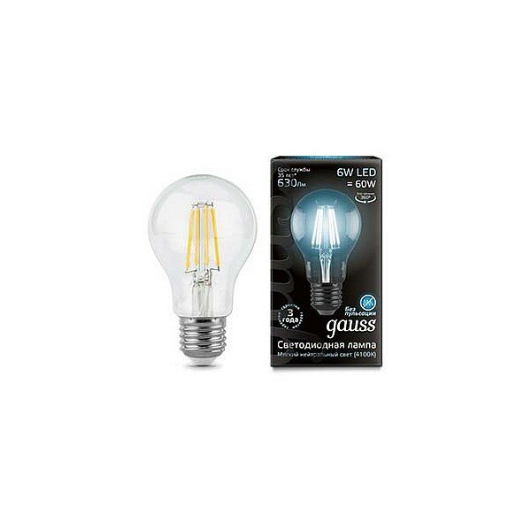(5 шт)Лампа Gauss Filament А60 6W 630lm 4100К Е27 LED 1/10/40