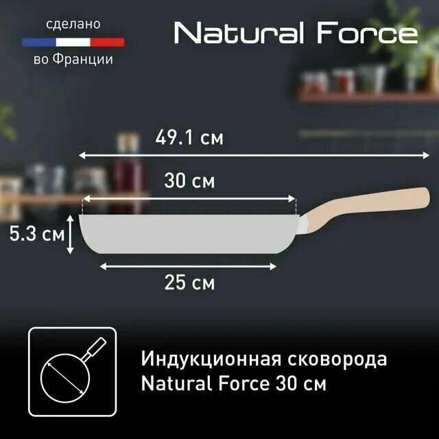 СохранитьСковорода 30 см Tefal Natural Force с антипригарным покрытием, с индикатором температуры, для всех видов плит, включая индукционные, сделано во Франции интересное: