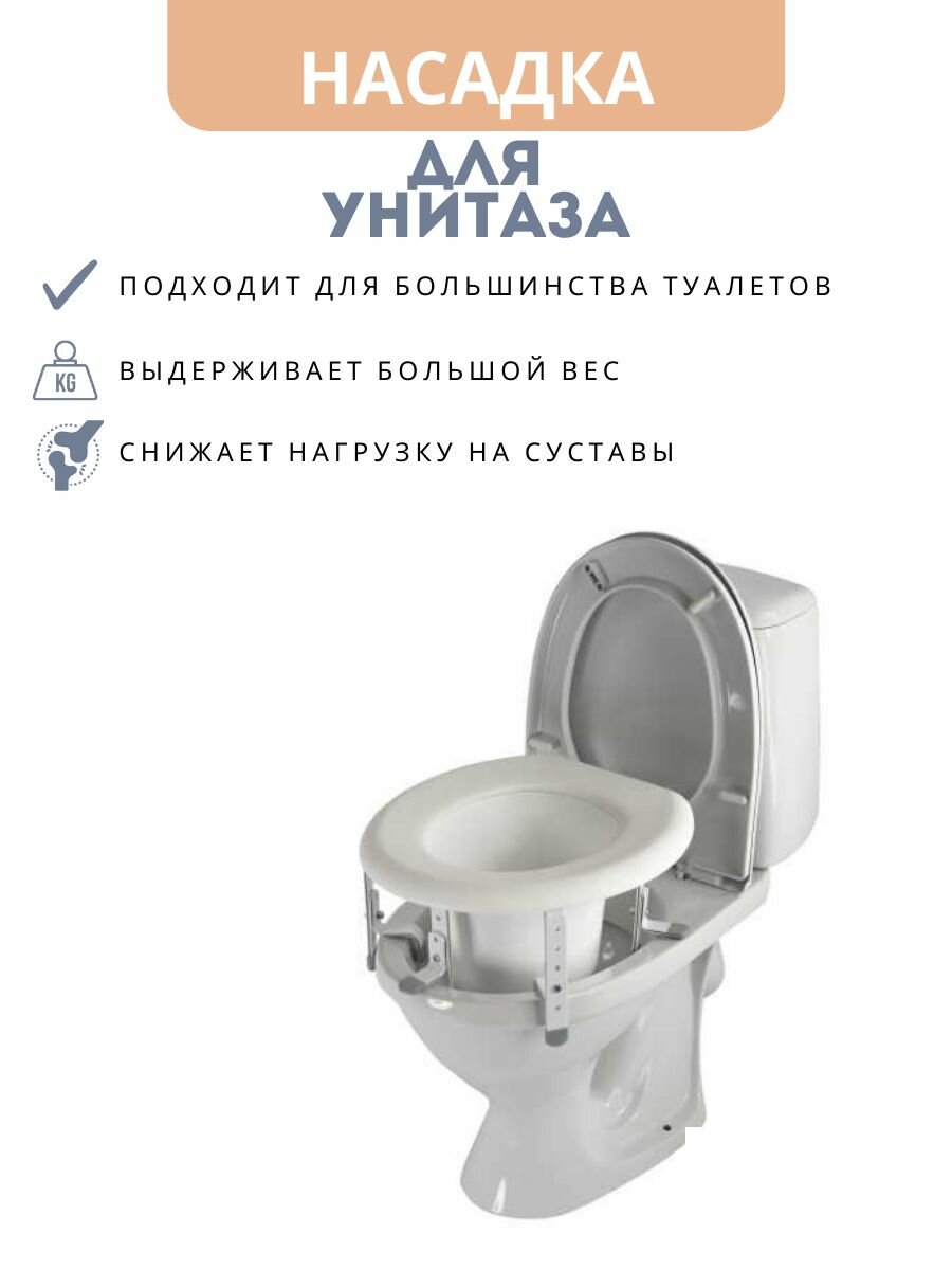 Насадка сиденье на унитаз для инвалидов и пожилых после операции, регулировка высоты 8-18 см. 10545