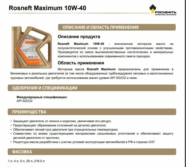 Rosneft Rn Maximum 10w-40 Sg/Cd (4л) Рнпк