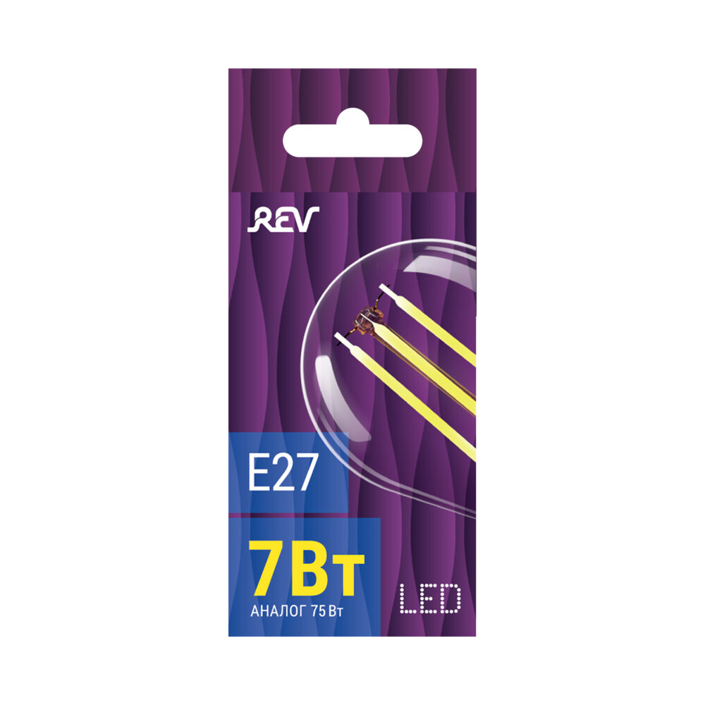Лампочка REV 32443 FILAMENT Шарик G45 7 Вт, E27, прозрачный
