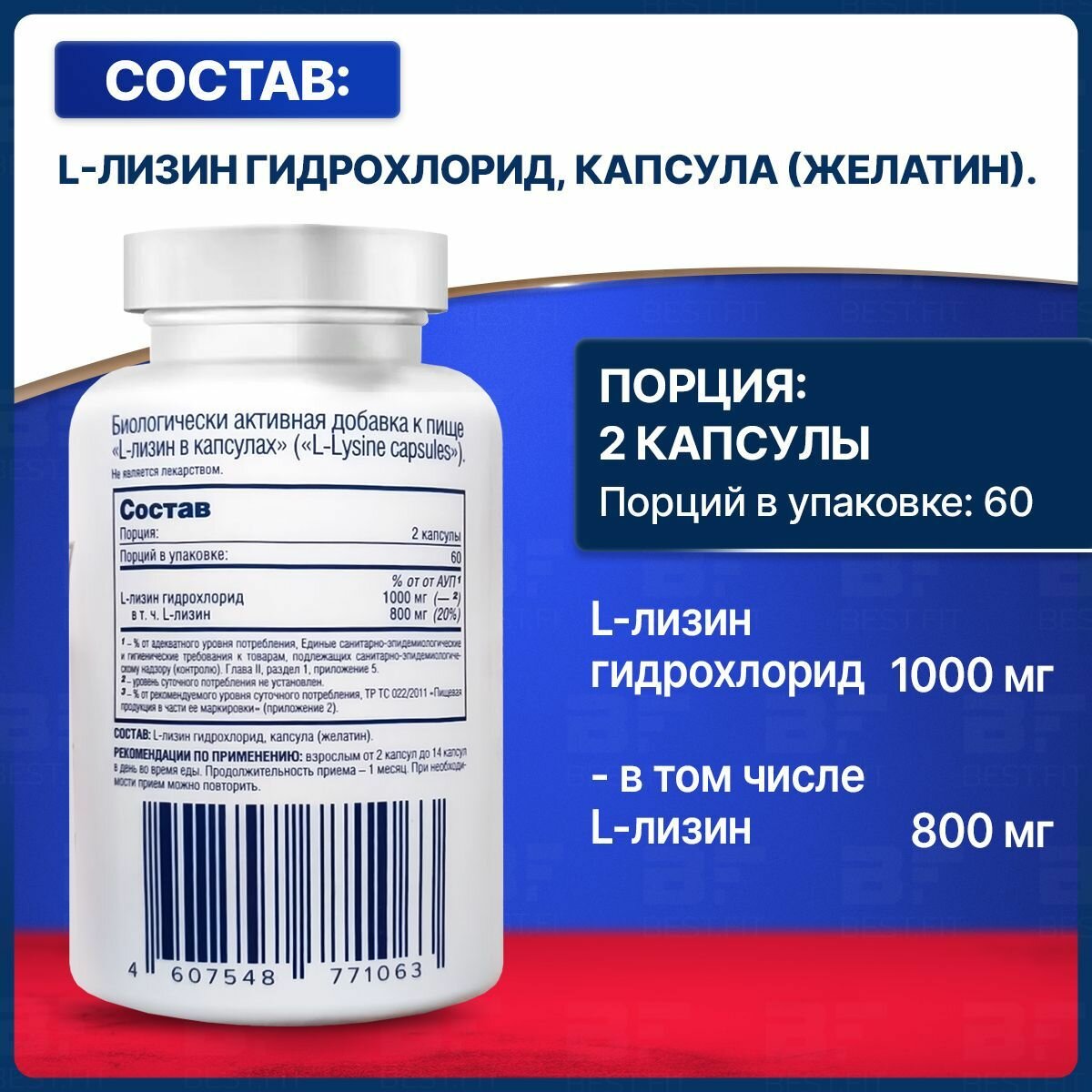 Be First L-Lysine 120 капсул интересное: