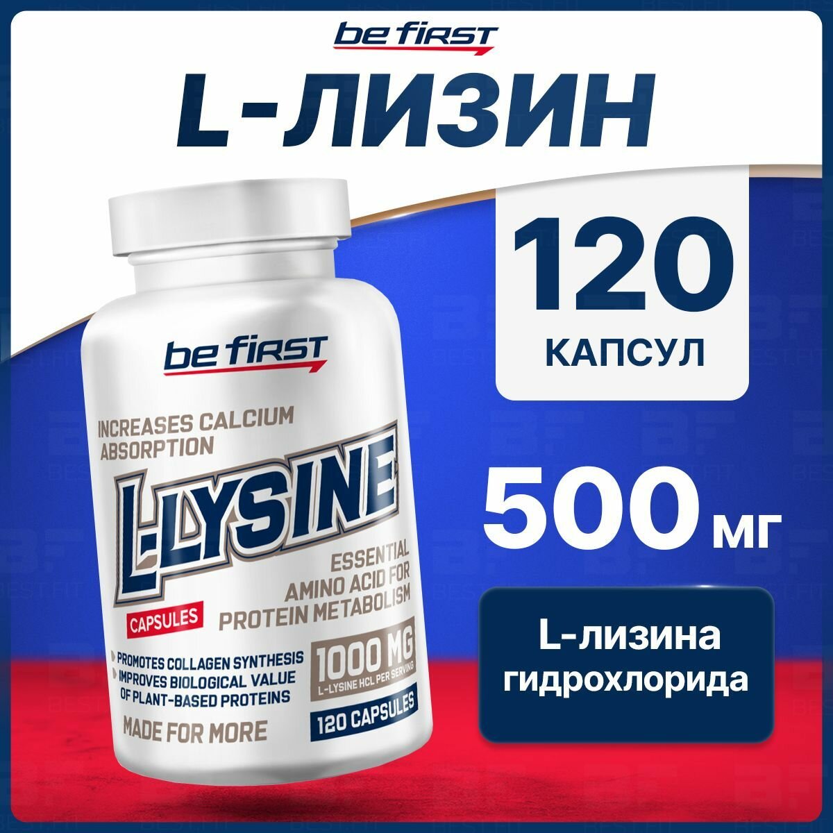 Лизин Be First L-Lysine (л-лизин гидрохлорид) 120 капсул