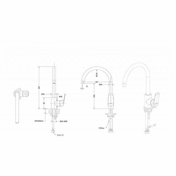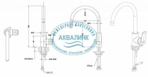 | Длина излива | 227 мм |