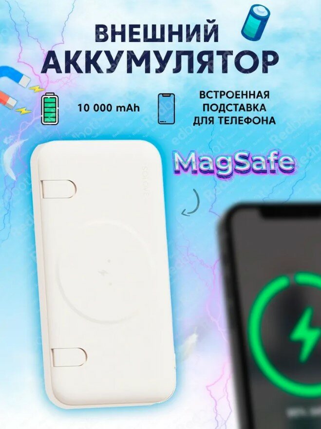 Купить Внешний аккумулятор Solove W10, 10000 мАч, 3 А, MagSafe, быстрая зарядка, белый
