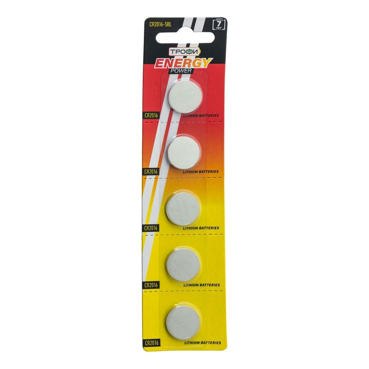 Батарейки литиевые круглые Трофи CR2016-5BL ENERGY POWER Lithium 5 шт.
