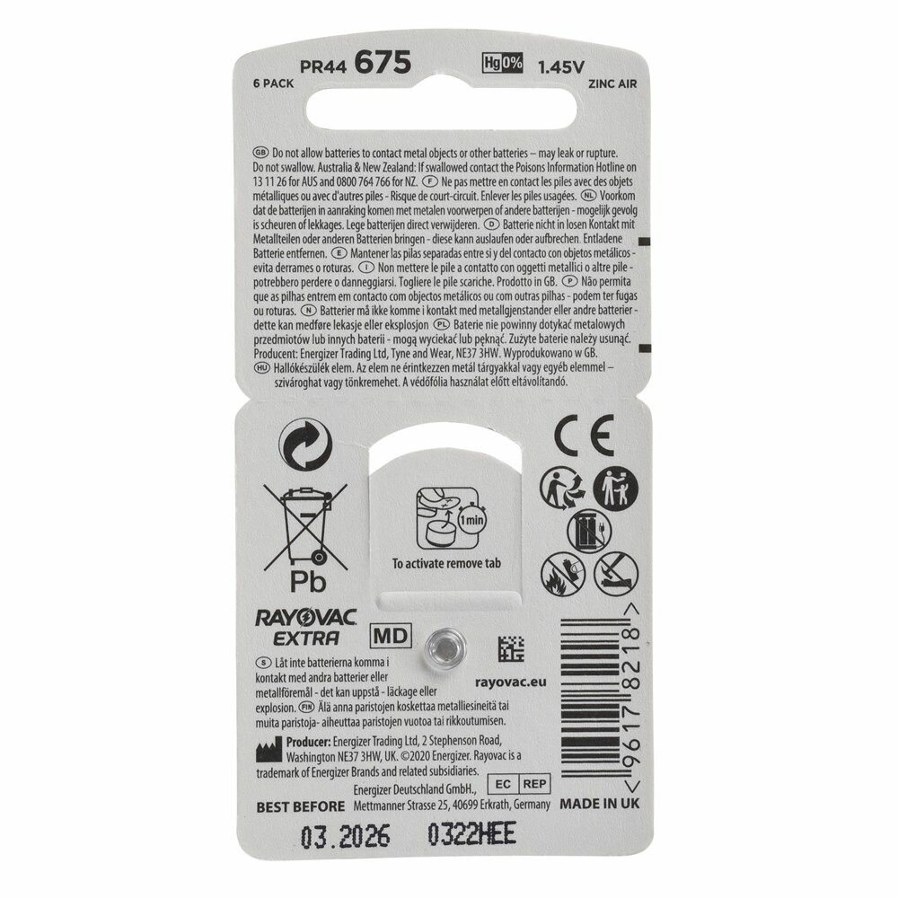 Купить Батарейки для слуховых аппаратов Rayovac Extra ZA675 / V675 / PR44 Zinc Air 1.45V 6 шт