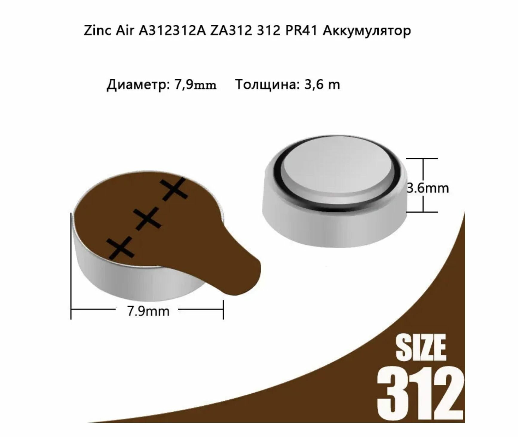 Батарейки Rayovac 312 (PR41) для слуховых аппаратов, упаковка (60 батареек)