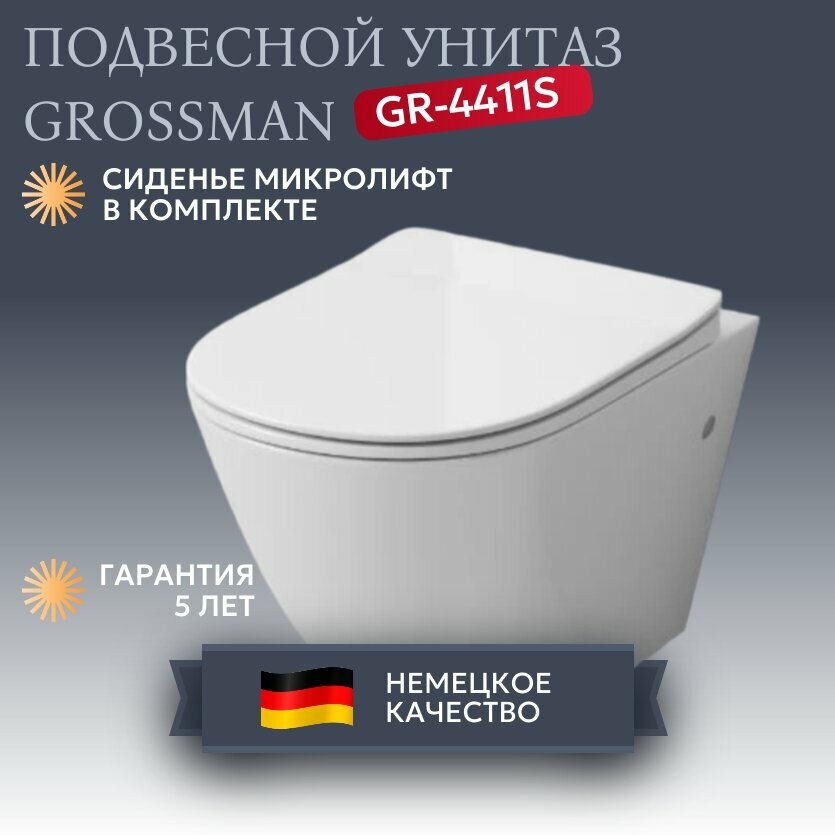 Grossman Унитаз Grossman GR-4411S подвесной Белый глянец с сиденьем Микролифт