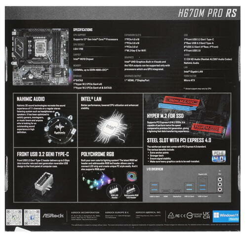 Материнская плата ASROCK H670M PRO RS (LGA1700, mATX)