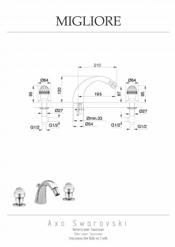 Migliore Смеситель Axo Swarovski 18475 для биде - бронза, на 3 отверстия