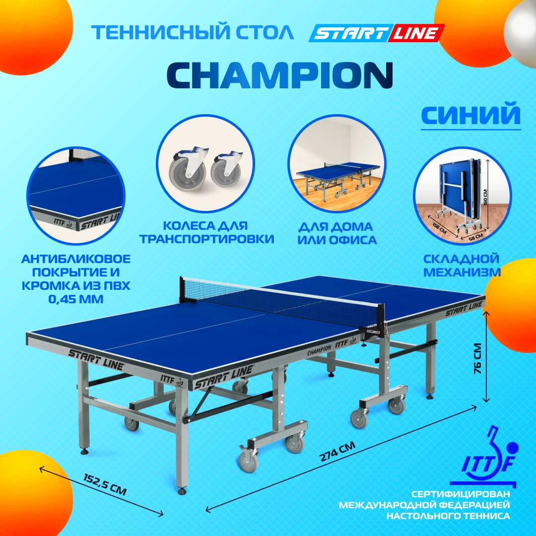 Профессиональный турнирный теннисный стол Start Line Champion для помещений (цвет синий)