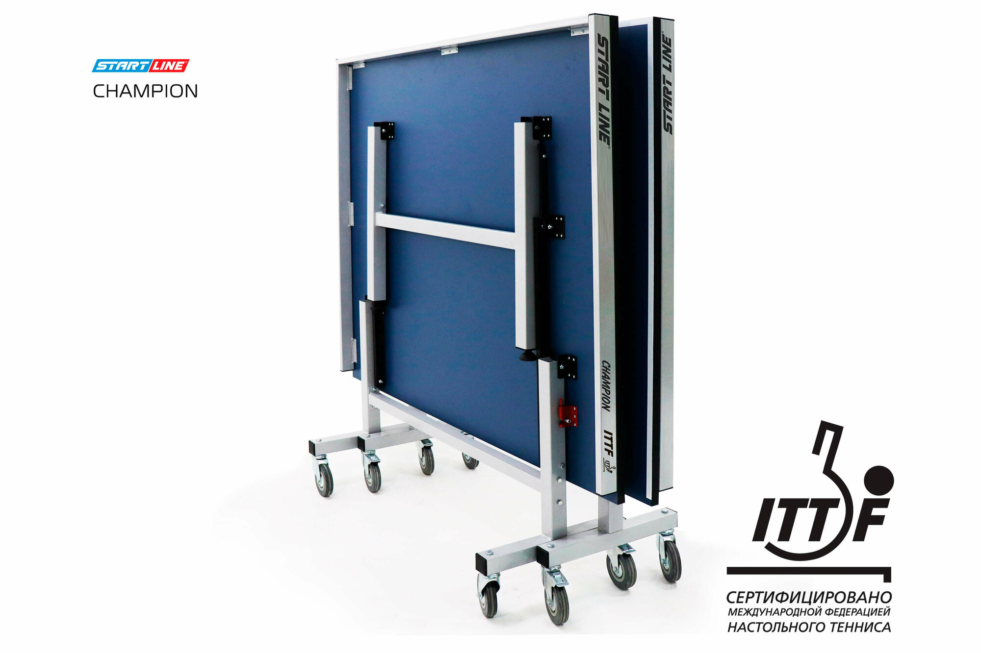 Теннисный стол START LINE Champion 25 мм, кант 50 мм, без сетки, обрезинен. ролики, регулируемые опоры (ITTF)