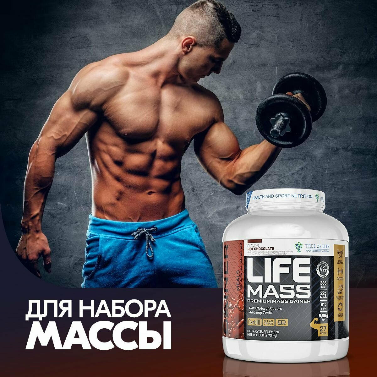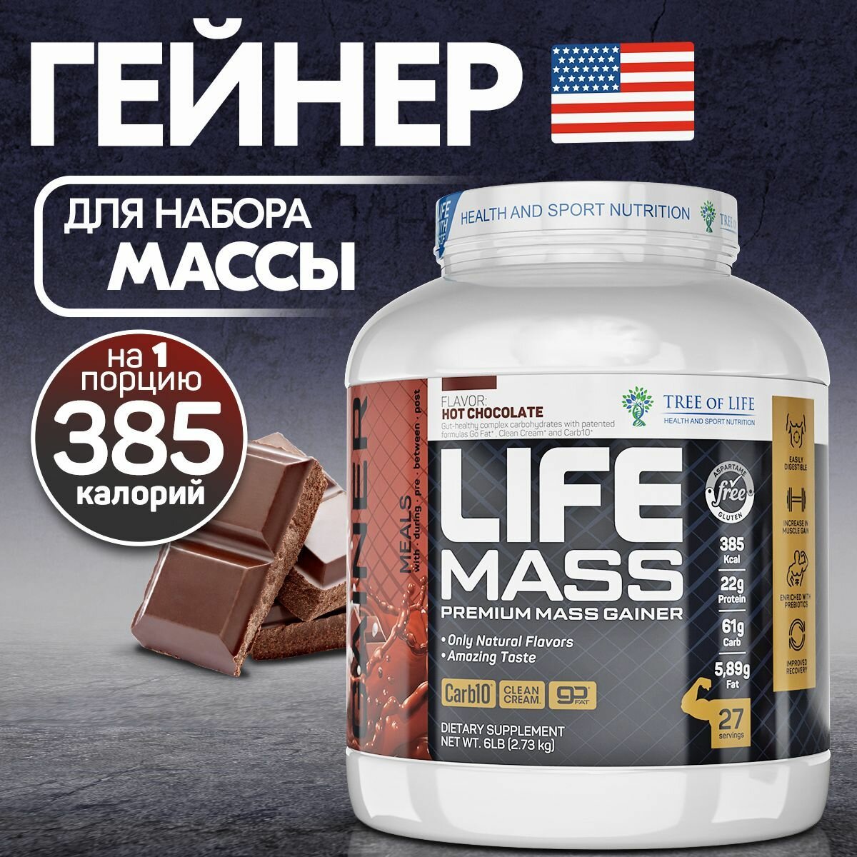 СохранитьГейнер для набора мышечной массы Tree of Life MASS gainer высокобелковый, углеводный коктейль, вкус Шоколад 6LB /2,73kg интересное: