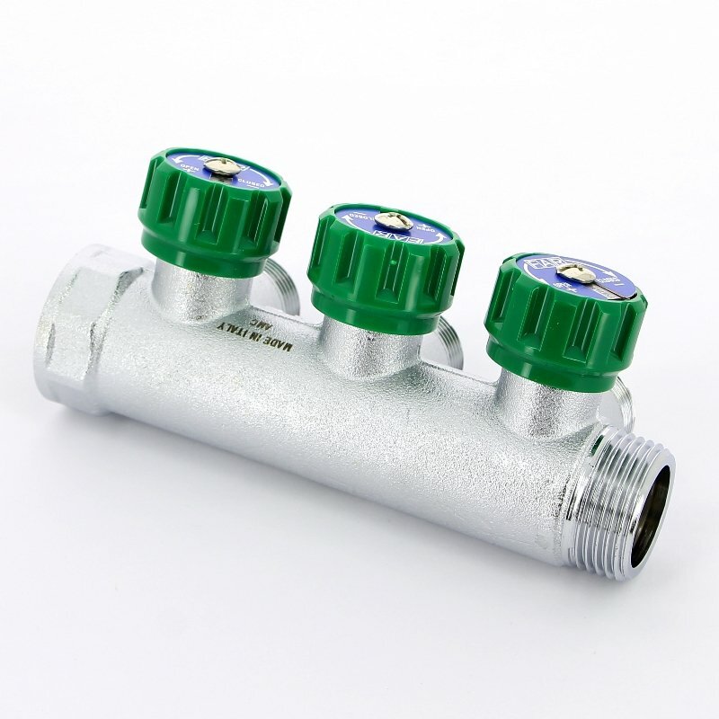Купить Коллектор FAR Коллектор FAR 1"х1/2" 3 выхода под конус хромированный с вентилями