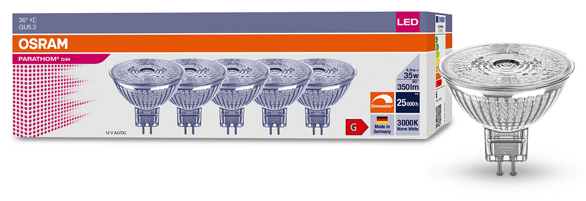 Ниже Вы можете прочитать отзывы на Osram / Ledvance PARATHOM DIM MR16 35 36 4.9 W/3000 K GU5.3 (10 шт.), ознакомится с подробными характеристиками, посмотреть интересные обзоры и фотографии на Osram / Ledvance PARATHOM DIM MR16 35 36 4.9 W/3000 K GU5.3 (10 шт.).