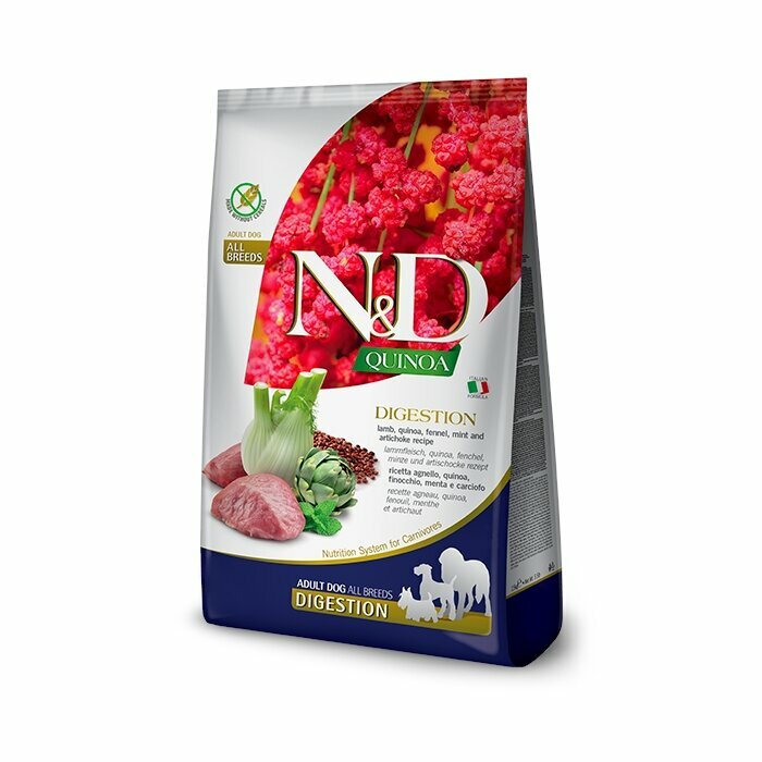 Сухой корм Farmina N&D Quinoa Digestion Lamb Adult Medium&Maxi, для взрослых собак средних и крупных пород, беззерновой, поддержка пищеварения, ягненок, киноа, фенхель, мята и артишок, 7 кг